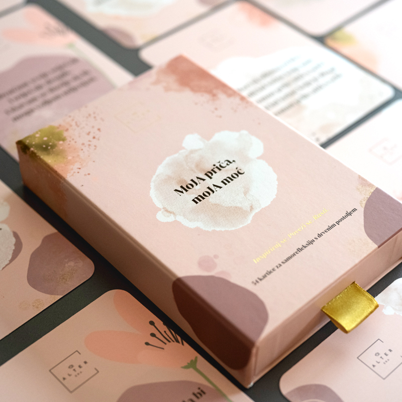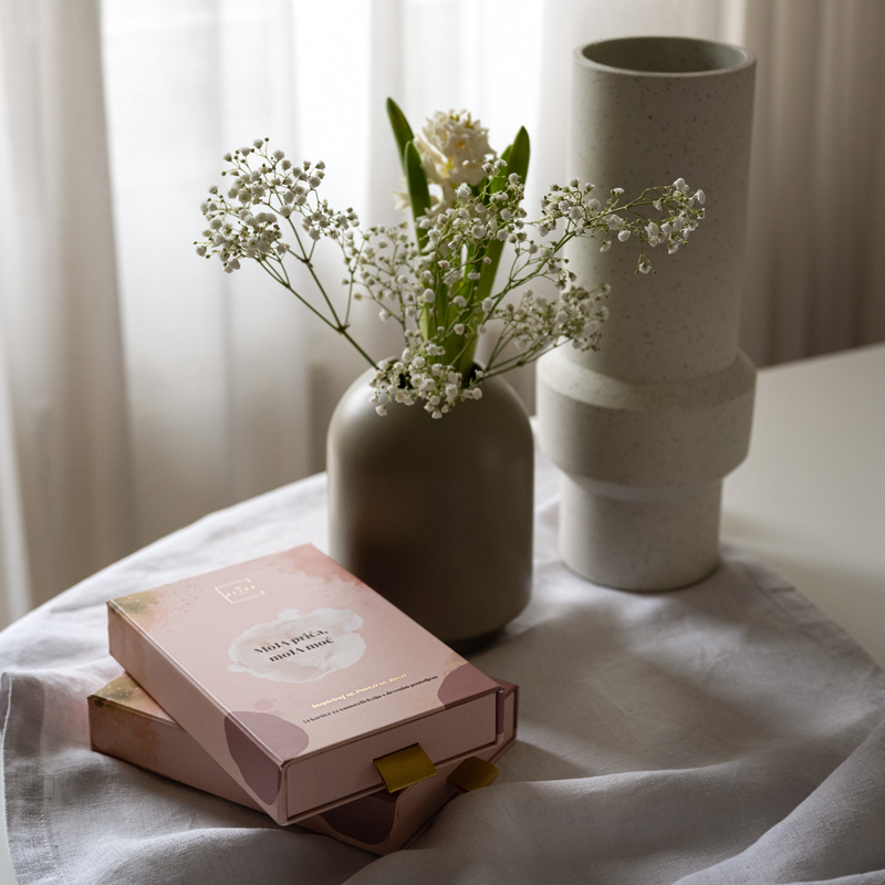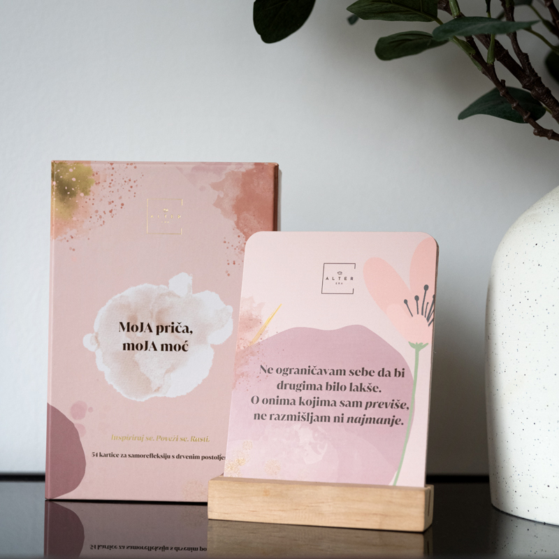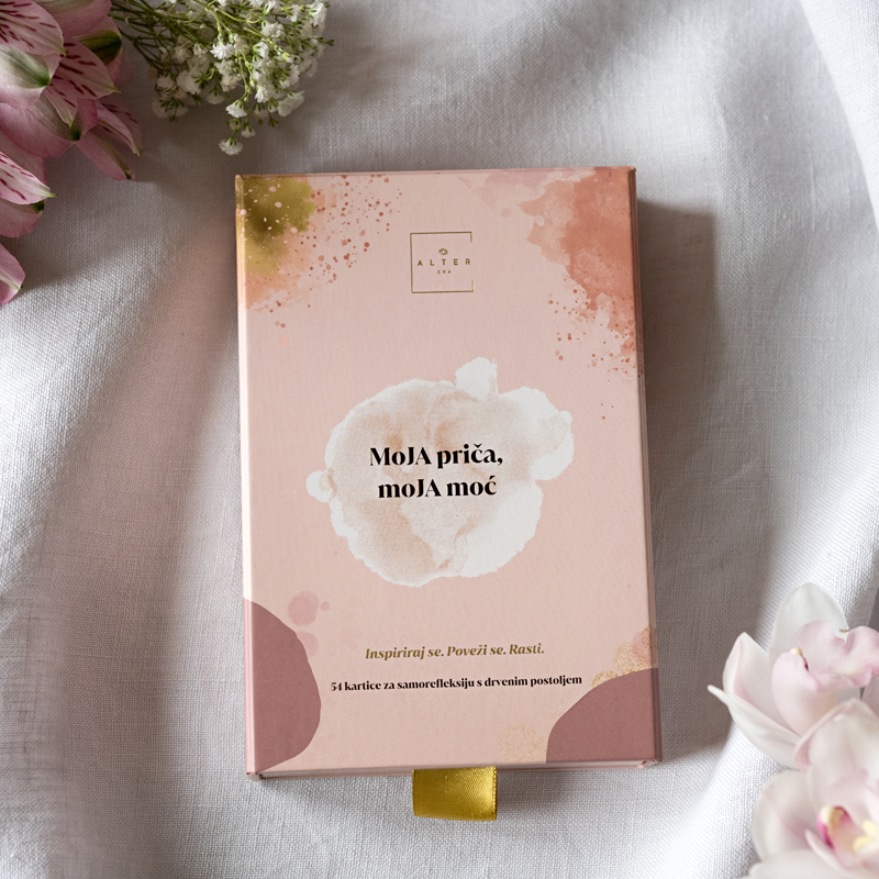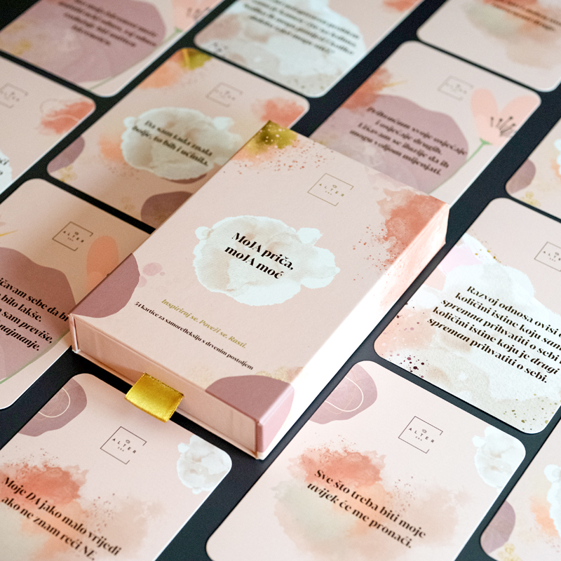 MoJA priča, moJA moć set je motivacijskih i afirmacijskih kartica namijenjenih ženama koje žele više – više samopouzdanja, više jasnoće, više radosti. Svaka kartica donosi tjednu inspiraciju, ponekad odvažan, a ponekad nježan podsjetnik koji te vodi prema propitkivanju vlastitog bića, boljem razumijevanju sebe, svojih želja, potreba, granica i odnosa.